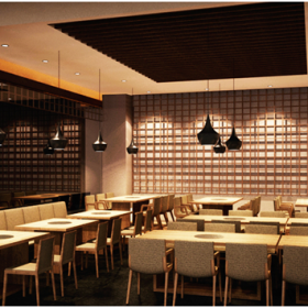 - Tấm ốp trên kệ ti vi: Gỗ Veneer sồi sơn để vân màu như phối cảnh